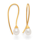 Zauberhafte Ohrhänger aus 18 Karat vergoldetem 925/- Sterlingsilber treffen auf eine schimmernde Süßwasserzuchtperle (3,54ct) in Tropfenform. Die charakteristische Formgebung lassen diese Ohrhaken, der einfach durch das Ohrloch gezogen wird, zu einem wirkungsvollen Hingucker werden.
