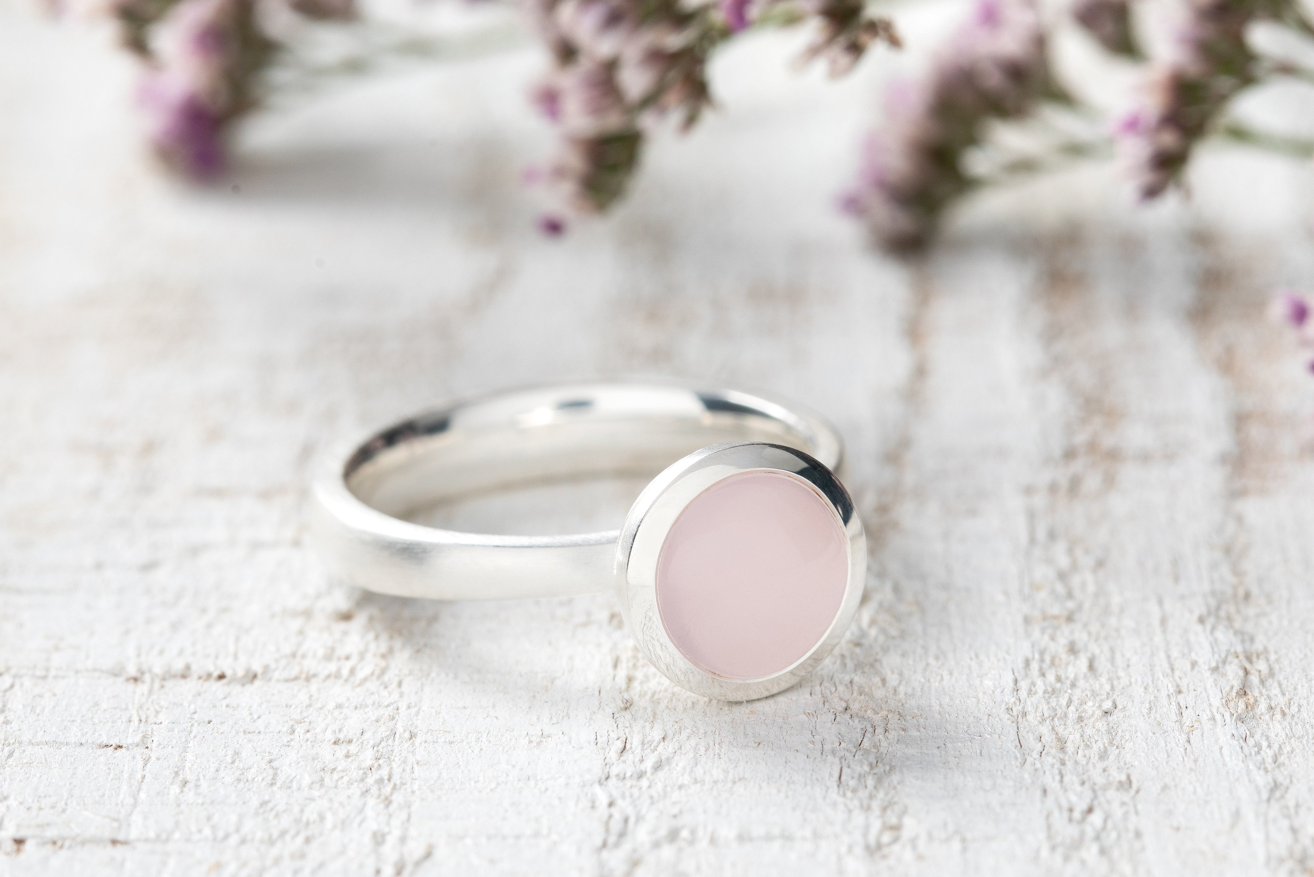Ein wunderschöner, milchig-rosaner Rosenquarz im modernen Cabochon-Schliff (1,58ct) trifft auf an der Fassung poliertes und an der Ringschiene strichmattiertes Sterlingsilber. Dieser schöne Fingerschmuck ist wertig gearbeitet und zeitlos zugleich. Ob alltäglich kombiniert oder als Höhepunkt eines farblich abgestimmten Outfits - diesen Schmuckstück lässt sich vielfältig kombinieren und es passt einfach immer. Erhältlich mit passenden Ohrsteckern und passendem Anhänger aus derselben Designline "Rose Glow".