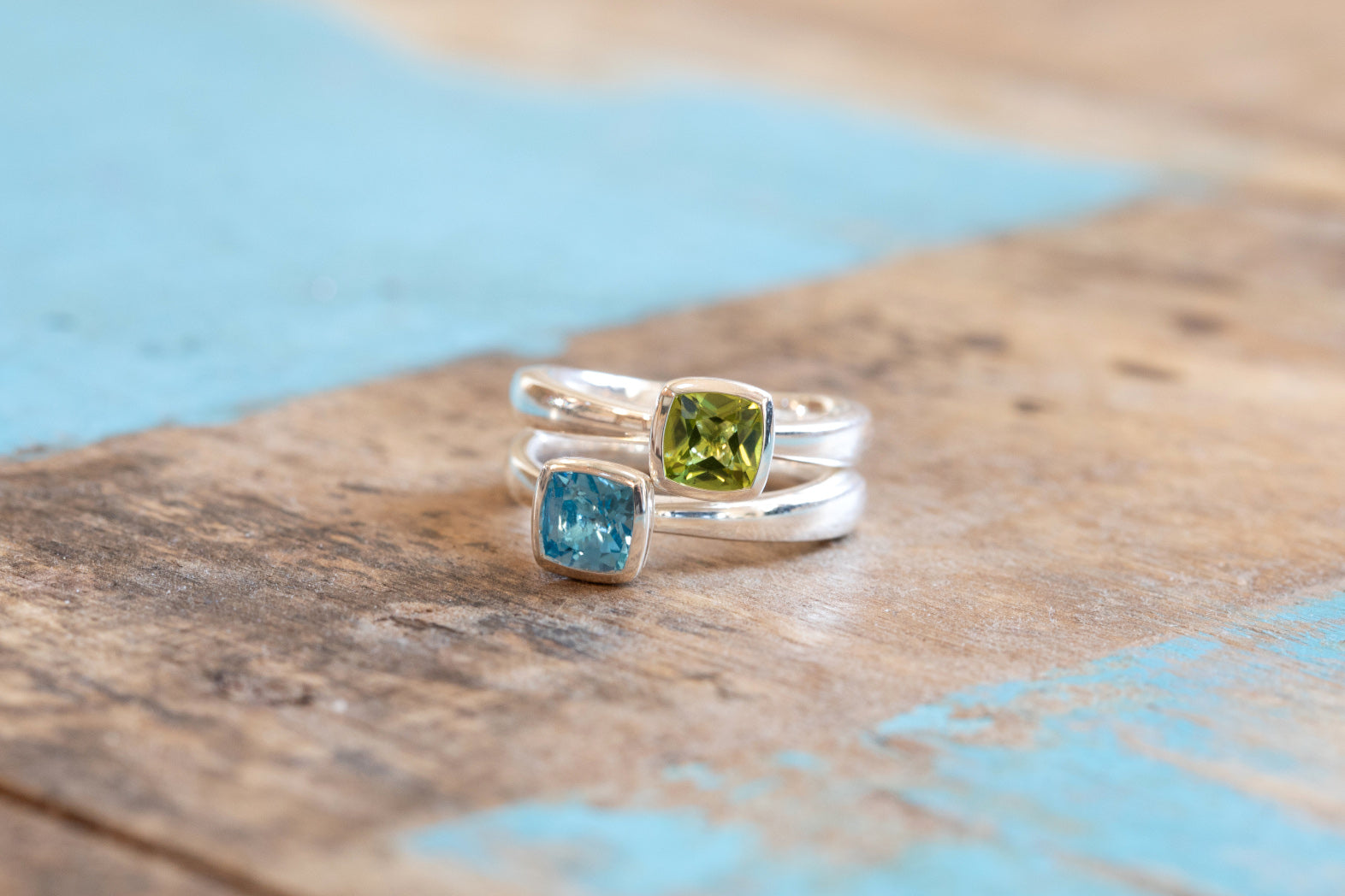 Dieser klassisch geformte Edelstein-Ring aus poliertem 925/- Sterlingsilber überzeugt durch einen intensiv schimmernden Peridot im attraktiven Kissen-Schliff mit insgesamt 1,03 Karat. Vielzählige Facetten heben die farbige Strahlkraft des echten Edelsteines hervor und lassen diesen Ring mit modern verlaufender Ringschiene zu einem echten Hingucker werden.