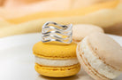 Massiv gearbeiteter Ring aus strichmattiertem 925/- Sterlingsilber, welcher durch seine raffiniert gearbeiteten Wellenbewegungen besticht. Vier einzelne Ringelemente fügen sich zusammen zu einem eindrucksvollen Schmuckdesign aus der Feder des Designers Alexander Vohswinkel.