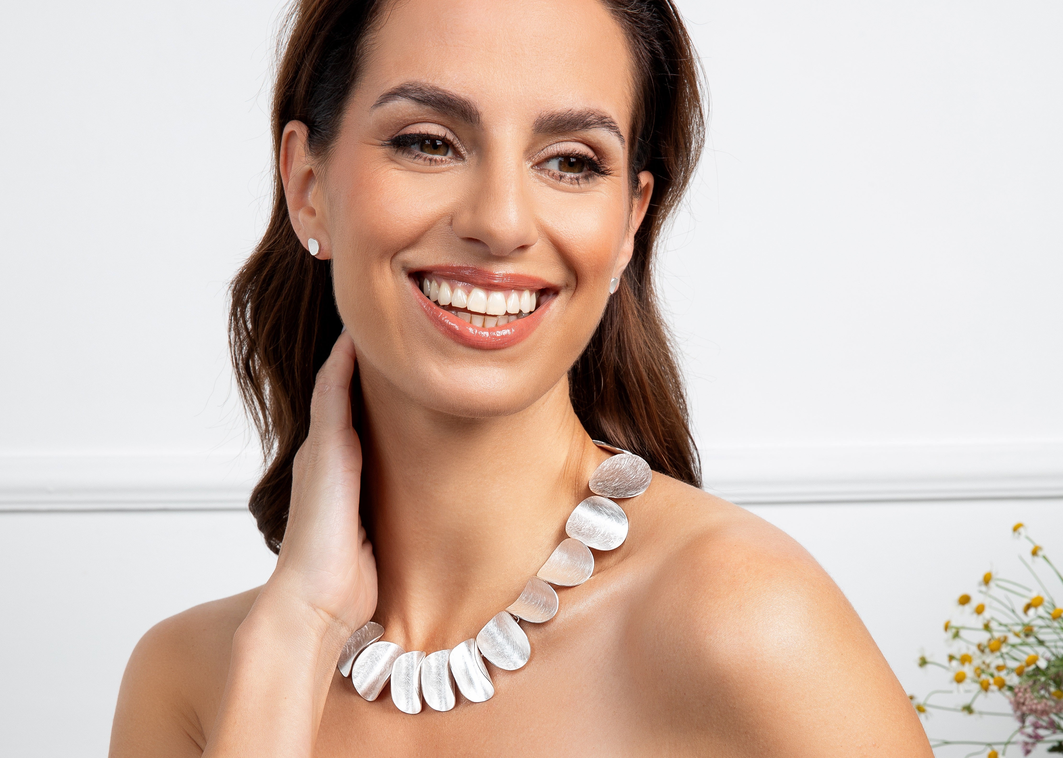 Ein Protest gegen die Banalität: „Bella“- diesen Namen trägt das brandneue Highlightcollier (Länge: 45cm + 3cm Verlängerungsoption) von bastian inverun aus der Feder der Designerin Nadine Resch. Kreisrunde große Schmuckelemente mit kratzmattierter Oberfläche und einem immer weiter zunehmenden konkaven Formverlauf ergeben den gestalterischen Höhepunkt dieses designstarken Meisterwerks. Einprägsam, authentisch und charakterstark, anstatt beliebig – das opulente Designcollier Bella unterstreicht die selbstbewusste Ausstrahlung seiner Trägerin gekonnt. Es ist ein wahres Statement, welches nicht nur schmückt und ziert, sondern welches eine Aussage besitzt und das Innere der Trägerin nach außen kehrt. Jedes bastian inverun Schmuckstück wird mit einer hochwertigen Schmuckverpackung geliefert. Maße:
