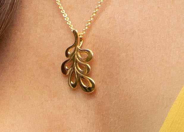 Designschmuckstück zum Verlieben: Dieser aus 18 Karat vergoldetem, poliertem 925/- Sterlingsilber gefertigte Anhänger besticht durch eine organisch geformte Blätter-Optik. Ob etwas sportlicher für den Alltag, oder aber für einen besonderen Anlass - dieses feminine Schmuckstück lässt sich vielfältig einsetzen.