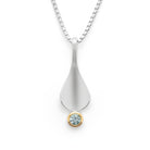 Dieser zauberhafte Anhänger in attraktiver Tropfenform mit leichter konkaver Wölbung aus strahlendem 925/- Sterlingsilber verzaubert durch einen am unteren Ende eingefassten Blautopas mit 0,30ct, der von einer gelbvergoldeten Fassung aus poliertem Silber umschmeichelt wird. Ein wertvoll verarbeitetes Schmuckstück aus der Feder der Designerin Nadine Resch mit Blickfang-Garantie. Erhältlich mit passenden Ohrsteckern und passendem Ring.