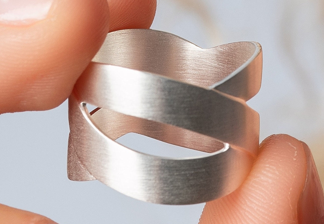 Dieser breite Ring aus 925/- Sterlingsilber überzeugt durch eine wertige Verarbeitung in Manufakturqualität. Die Cut-Outs in der Ringschiene sorgen für eine besonders markante Ausstrahlung dieses zeitlos-eleganten Schmuckstücks. Designt wurde dieses gradlinige Schmuck-Statement von der mehrfachen Red Dot Designaward-Gewinnerin Dr. Sabine Brandenburg-Frank.