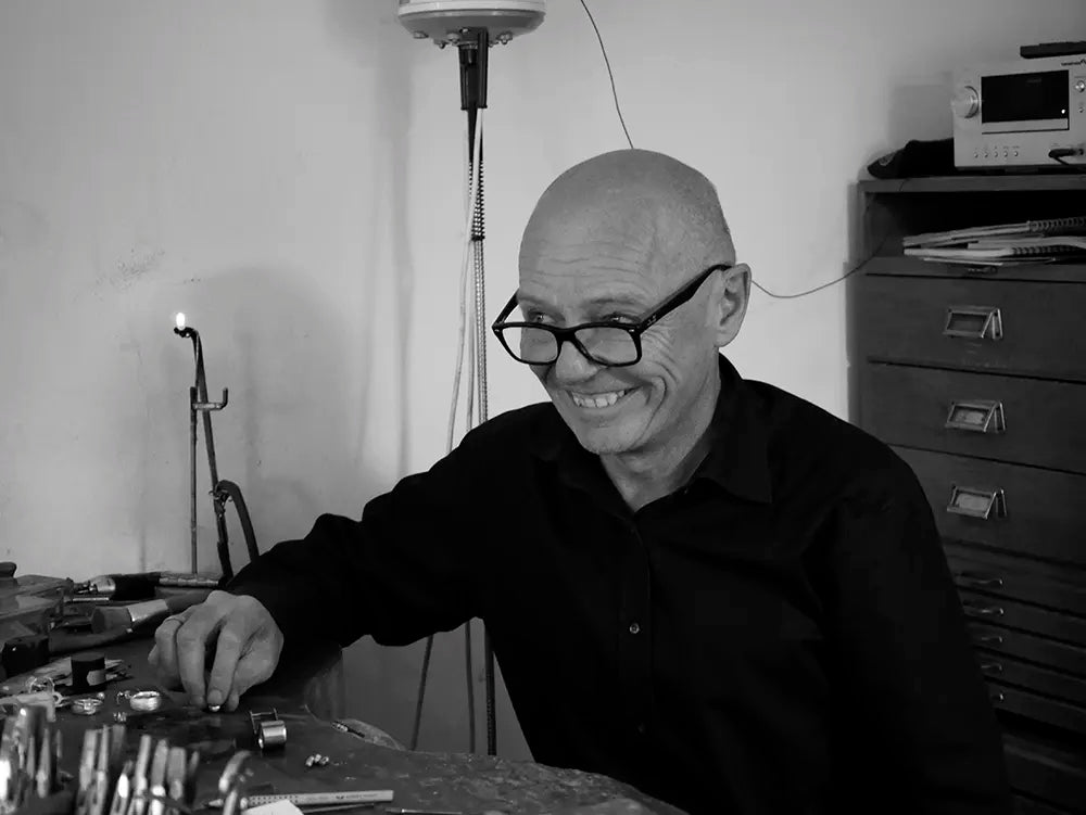 Neben vielen selbst designten Schmuckstücken setzen wir bei bastian inverun auf Kooperationen mit bereits etablierten und preisgekrönten, aber auch jungen aufstrebenden Designern im In- und Ausland. Aktuell arbeitet bastian inverun besonders intensiv mit den Designer*innen Thomas Mayer (Foto), Nadine Resch, Dietmar Sebastian, Catherine Niegel, Antje Liebscher und Sabine Brandenburg-Frank zusammen.