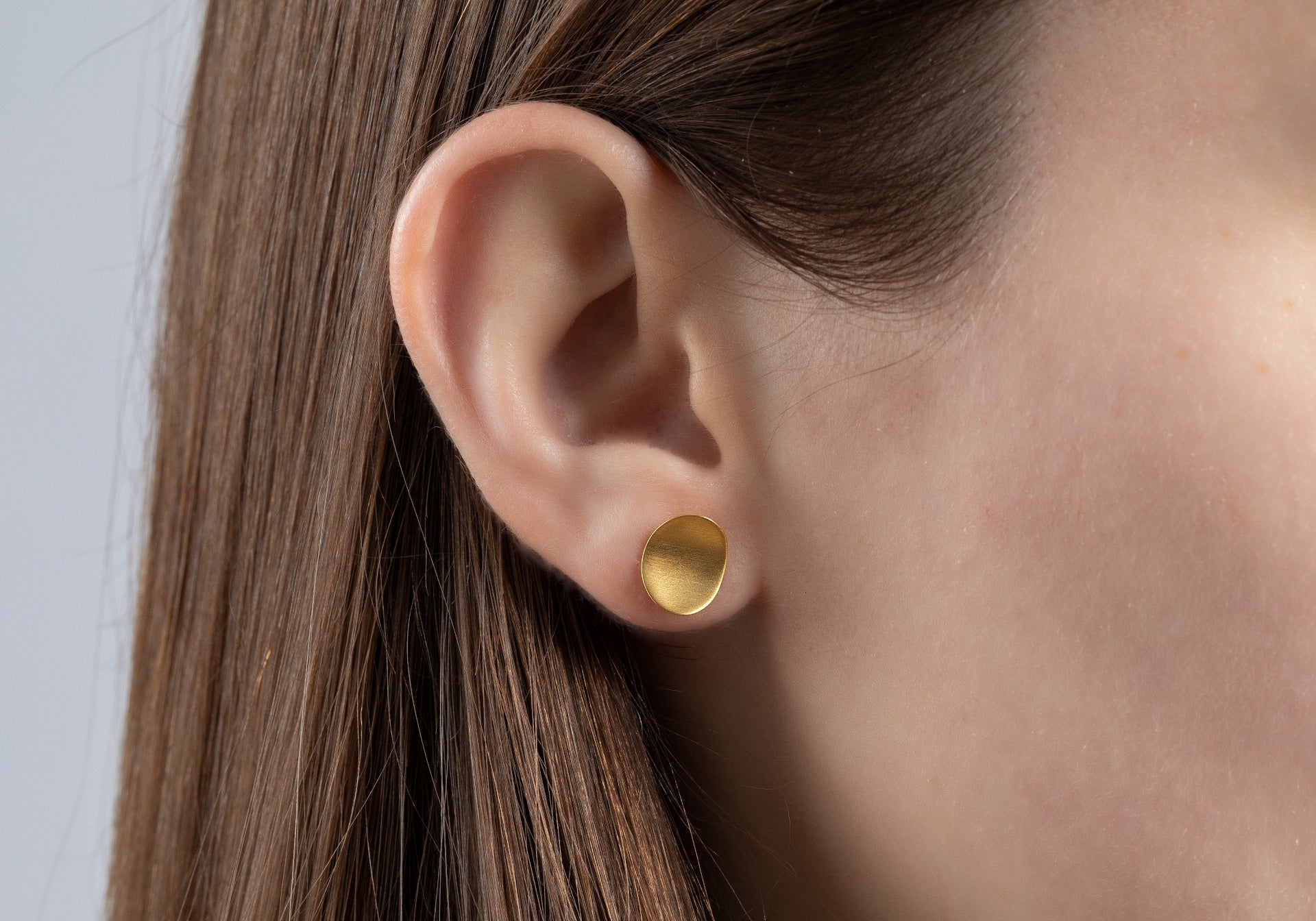Stilvolle Ohrstecker im leicht gewölbten ovalen Design aus mattiertem, vergoldetem 925/- Sterlingsilber. Ein zeitloses und zugleich elegantes Schmuckstück aus der Feder der Designerin Antje Liebscher, das sich als das perfekte Accessoire für den Alltag beweist.