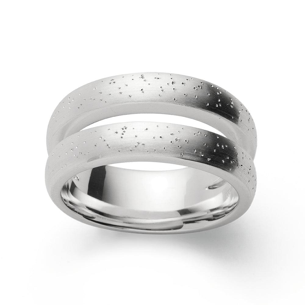 Schlicht gehaltener Ring mit schimmernder Diamantierung (so nennt man die durch kleine Kerben erzeugte partielle Polierung der Oberfläche) und charakteristischem Ring-Kopf. Ein zeitloses Schmuckstück, welches durch den unvergleichlichen Schimmer an einen funkelnden Sternenhimmel erinnert. Perfekt als Geschenk, dieses Basic-Schmuckstück ist vielseitig kombinierbar und der perfekte Allrounder für jeden Anlass.
